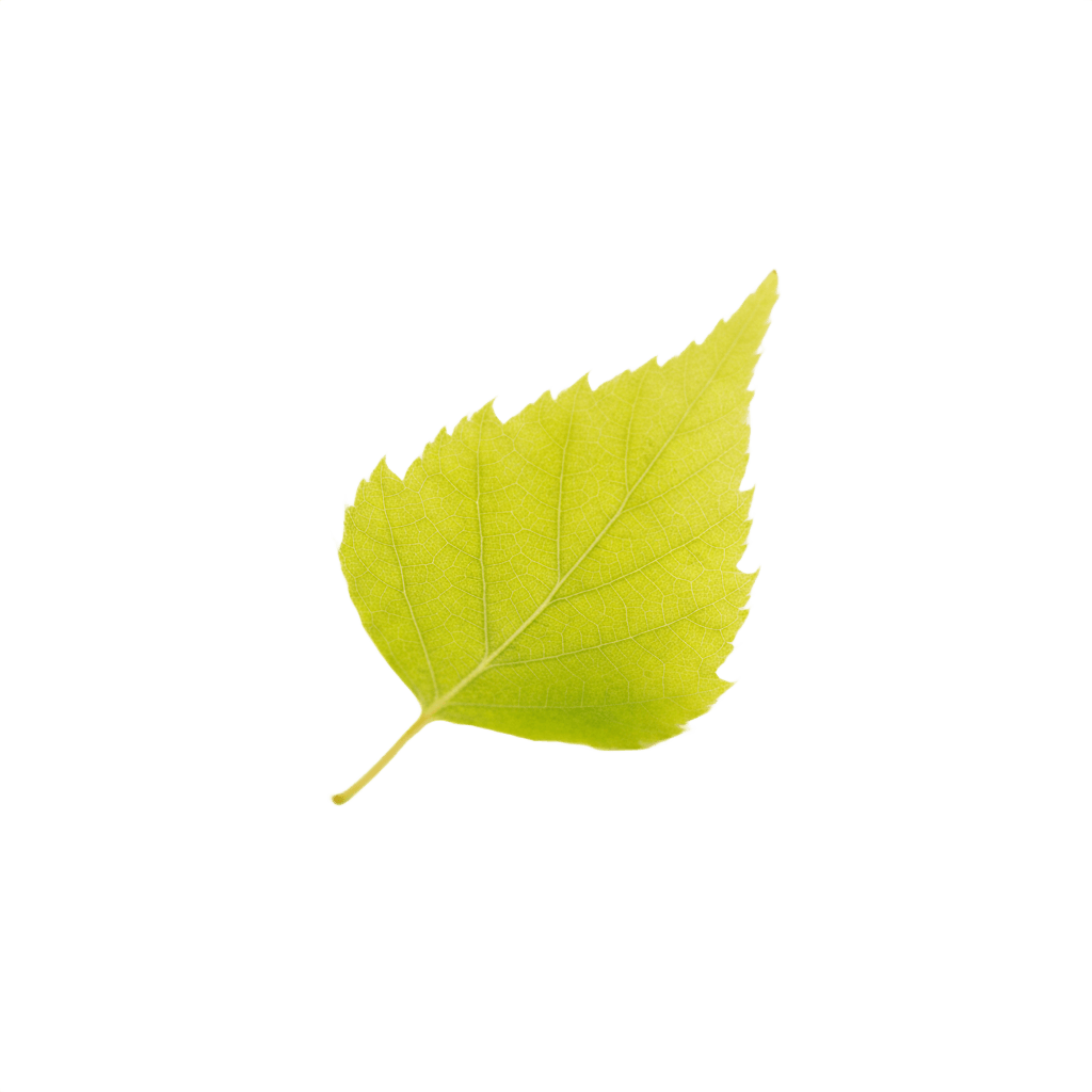 A bright yellow-green birch leaf with serrated edges and a natural curl, shot with shallow depth of field. Great for botanical projects, spring designs, and nature photography collections.
