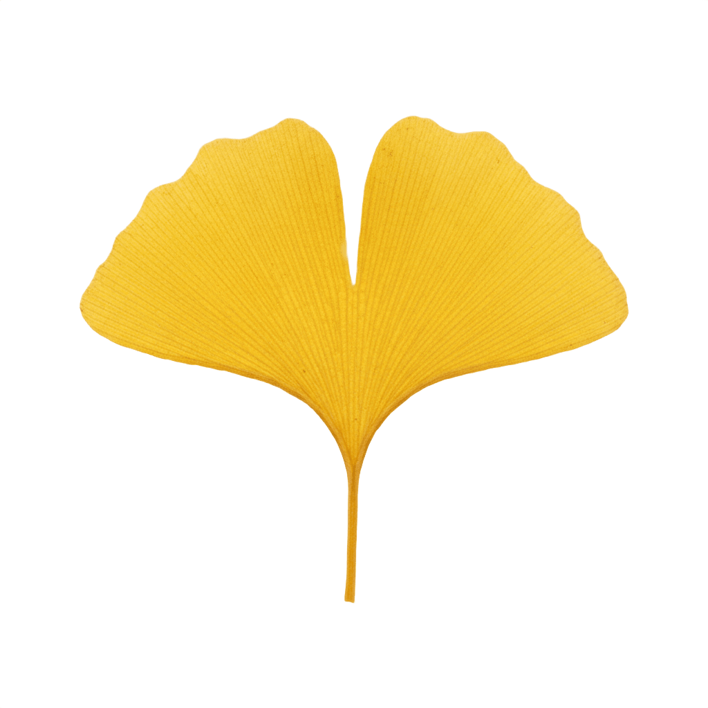 A golden yellow ginkgo biloba fan-shaped leaf with delicate radiating veins. Suited for Asian-inspired designs, wellness branding, and elegant botanical visuals.