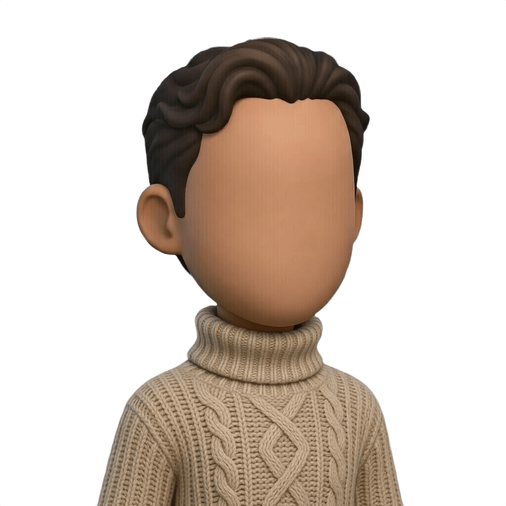 3D Clay Avatar with Wavy Dark Brown Hair and Beige Turtleneck