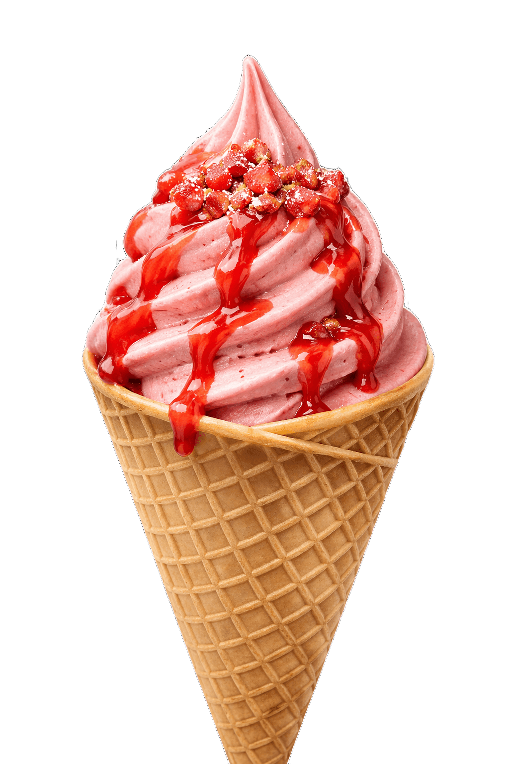 strawberry soft serve ice cream cone strawberry sauce transparent