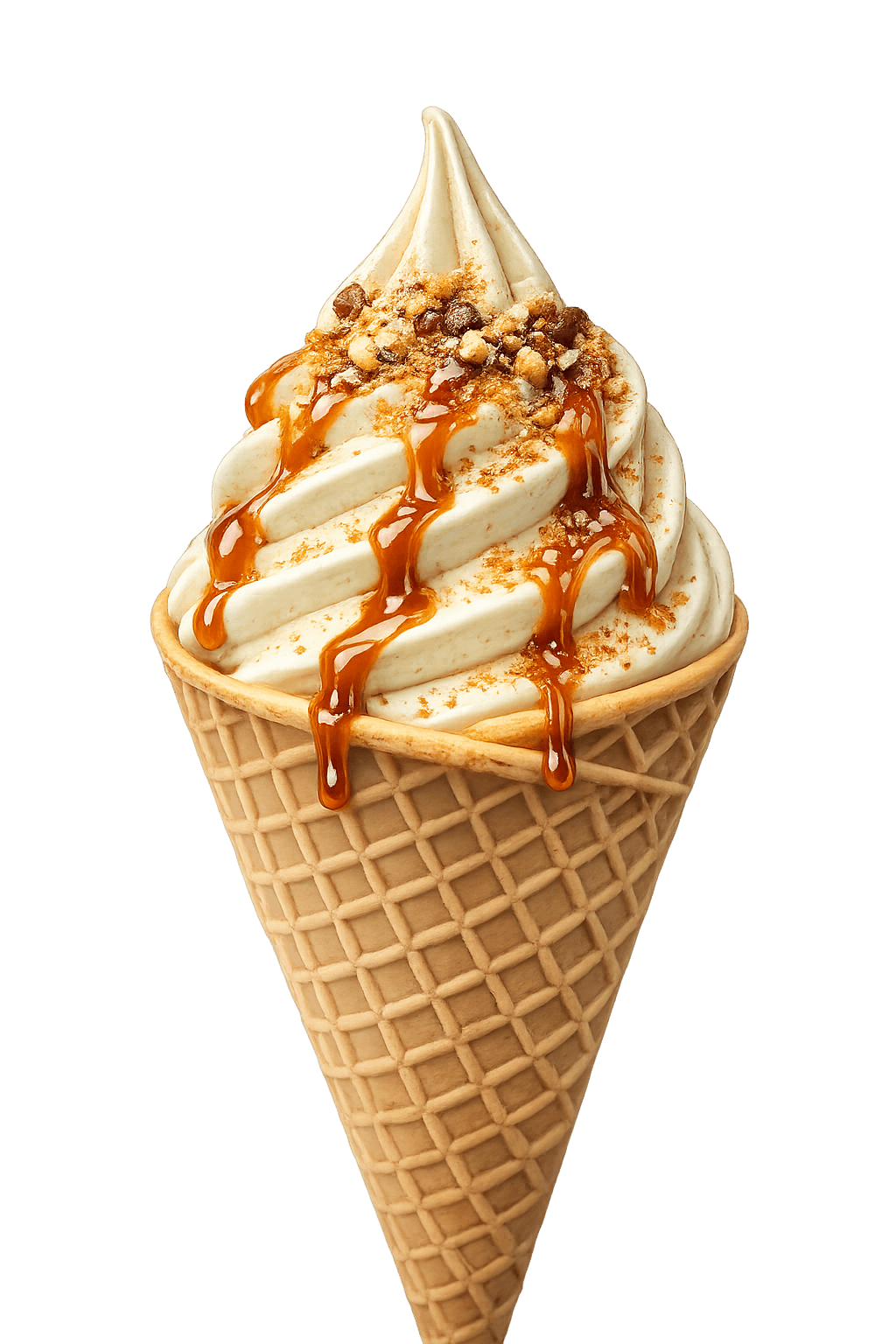 vanilla soft serve ice cream cone caramel drizzle transparent